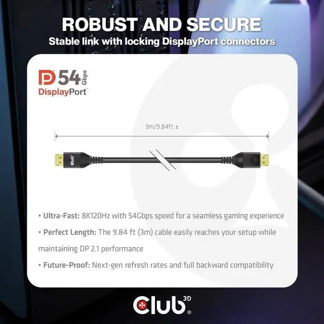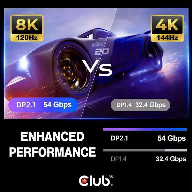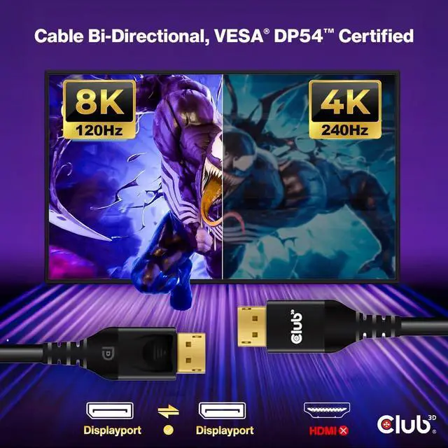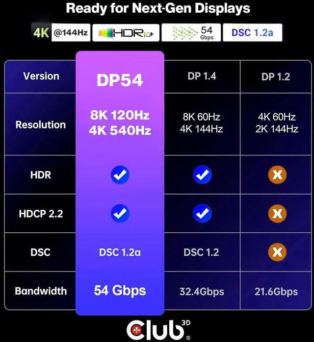 Fully DisplayPort version 2.1 compatible, UHBR10/13.5 up to 54 Gbps; DP54 compliant, VESA certified