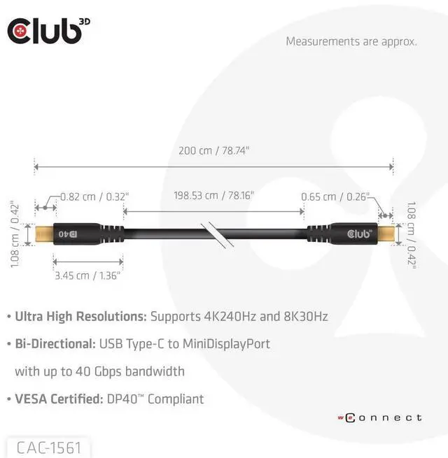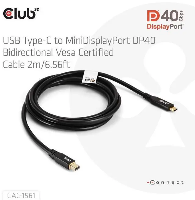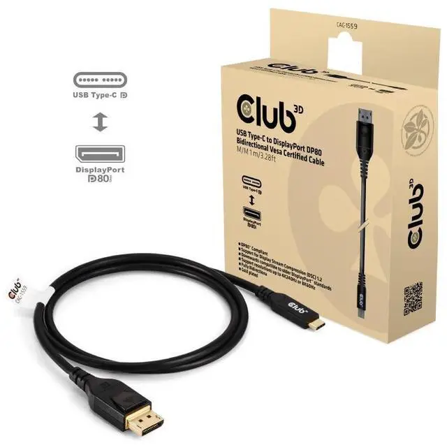 HIGH-QUALITY VESA CERTIFIED: High-quality Club 3D VESA Certified USB type C to mini DisplayPort cable, Works with DP and DisplayPort++, Thunderbolt 3 and 4 Compatible, Downwards compatible to older DisplayPort standards. Club 3D uses Bio-Degradable bags according to the EN/DIN 13432