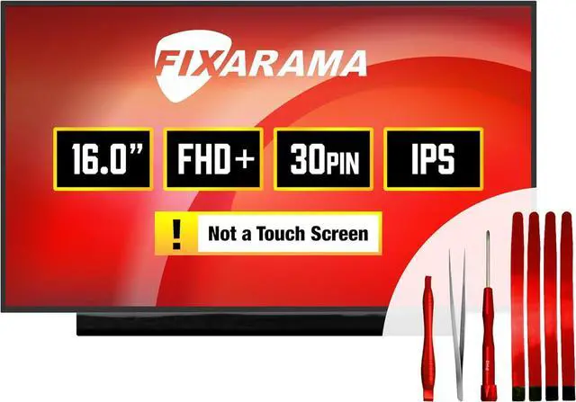 Tested grade A+ (no dead pixels), guaranteed compatibility Lifetime warranty Video connector: 30 pins (must match your current screen) Max. resolution: FHD+ 1920 x 1200 (must match your current screen) Screen size and finish: 16.0" Matte IPS (Wide View)