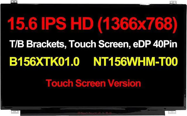 New Replacement Embedded Touch LCD LED Screen Display HD 1366x768 15.6" Bottom Right eDP 40 Pin Connector B156XTK01.0 NT156WHM-T00 (40-Pin, Standard/Large connector, Top and Bottom Brackets)