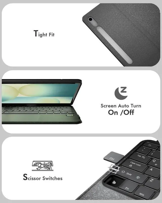 Mag-Snap Freedom Keyboard: Strong magnets let you rip off the keyboard to read or sketch with fingers. No flimsy clips! It snaps back securely