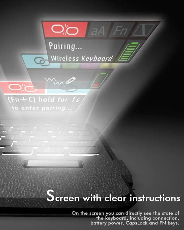 New! Status Display Screen: The screen shows real-time battery, connection or charging, knowing the keyboard status at a glance.