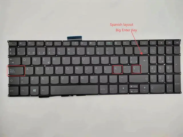 NEW Latin Spanish layout For Lenovo Ideapad Yoga 7-15ITL5 5-15IIL05 15ARE05 15ITL05 5-15ALC05 ,Yoga Creator 7-15IMH05 82DS ,Yoga 7-16ARP8 16IAH7 16IAP7 16IRL8, Yoga Slim 7-15IMH05 7-15ITL05 7-15IIL05 Grey with Backlit ---------without frame--------- Big Enter Key-(CAN NOT fit Small enter key version)----------- Spanish layout---------- with Backlit