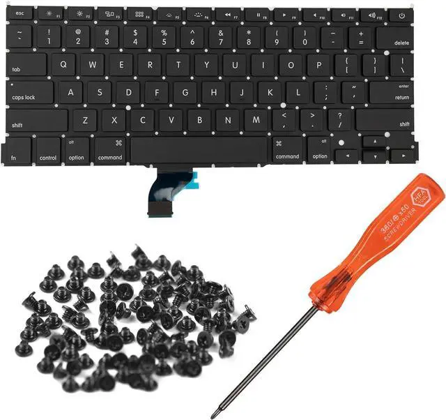 InstallEach MacBook Pro keyboard replacement A1502 is tested before shipping and working. Package include: only keyboard screws and screwdriver, not include backlight.