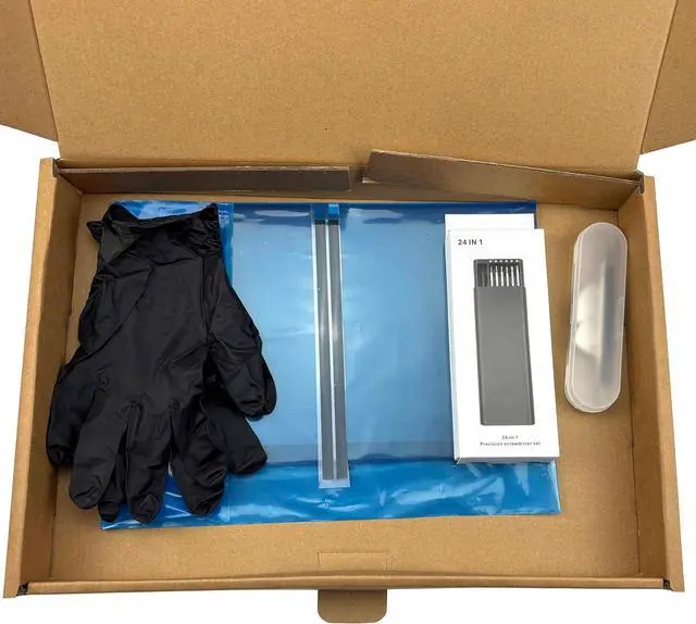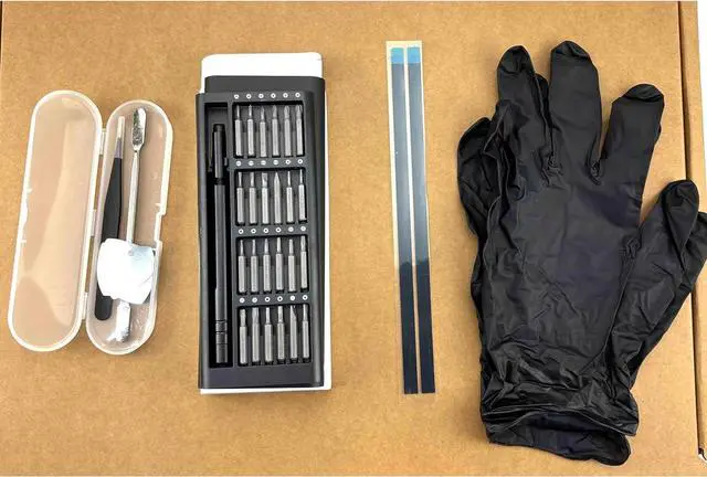 You will receive: LCD Module, Disposable gloves, 24 in 1 screwdriver, Crowbar, tape