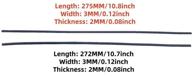 Length: 272MM/10.7inch (275MM/10.8inch ) Width: 3MM/0.12inch Thickness: 2MM/0.08inch(There may be slight differences in manual measurements)