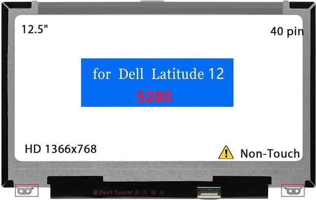 Screen Replacement for Dell Latitude 12 5280 12.5" HD 1366x768 40 pin LCD Non-Touch Screen Display Panel