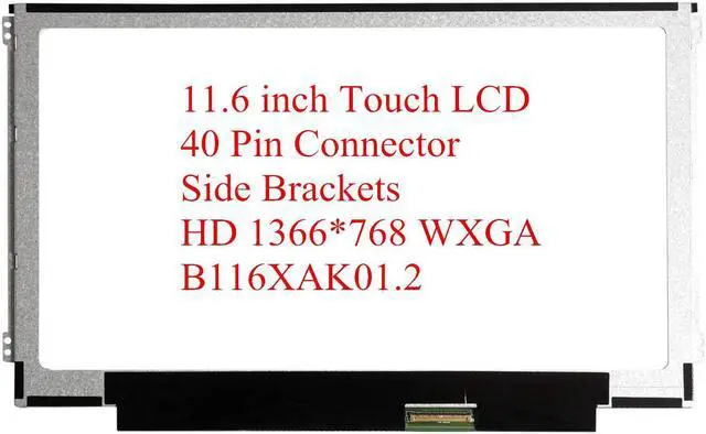 New Replacement Embedded Touch LCD LED Screen Display Digitizer Glass Panel Assembly HD 1366x768 11.6" Bottom Right eDP 40 Pin Connector B116XTK01.0 B116XAK01.1 (40-Pin, Standard/Large connector, Side Brackets)