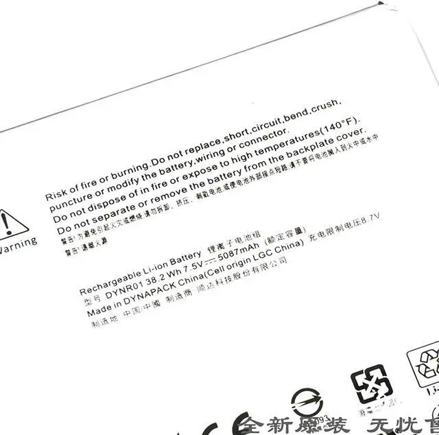 Battery type: Li-ion; Capacity: 5087mAh/38.2Wh; Voltage: 7.5V