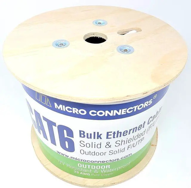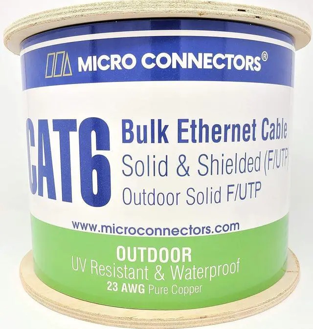 Micro Connectors 500' Solid Shielded (STP) Cat6 Outdoor, UV Resistant and Waterproof Bulk Ethernet Cable - White (TR4-560WOU-500)