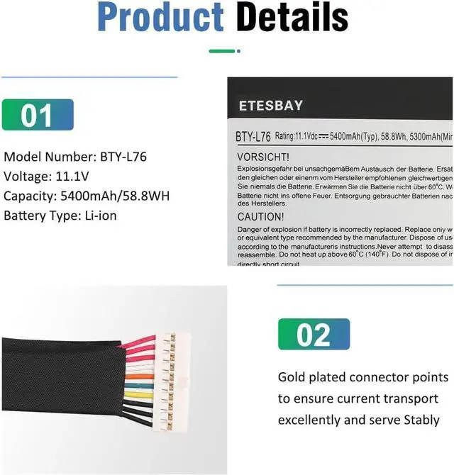 Replace Part Number:BTY-L76; Compatible Laptop Models: MSI GS70 Series GS70 2PE-026CN, GS70 2QE-084CN; MSI GS70 MS-1771 MS-1772 MS-1774; MSI GS72 Series; Medion Erazer X7615 X7613 Series; Schenker XMG C703 Series