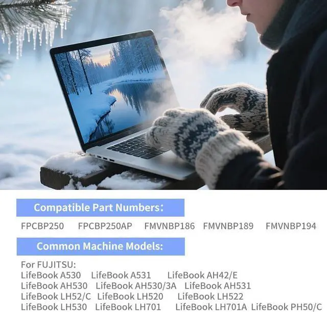 Compatible Laptop Model:For FUJITSU: LifeBook A530 | LifeBook A531 | LifeBook AH42/E | LifeBook AH530 | LifeBook AH530/3A | LifeBook AH531 | LifeBook LH52/C | LifeBook LH520 | LifeBook LH522 | LifeBook LH530 | LifeBook LH701 | LifeBook LH701A | LifeBook PH50/C | LifeBook PH521