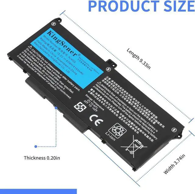 Specification:Model Number: RJ40G. Capacity: 63WH/4145mAh. Voltage: 15.2V.he battery is durable and has overcurrent protection, anti-overcharge, anti-overdischarge and temperature control functions