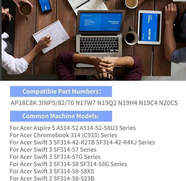 Compatible Models: Replacement for Acer Aspire 5 A514-54 A514-54G/Acer Aspire 5 A514-52 A514-52K A514-52K-36GL /Acer Aspire 5 A515-56 A515-56G A515-56S A515-56T/Acer Aspire 7 A715-42G/Acer Swift 3 SF314-42 SF314-57 SF314-57G SF314-58 SF314-58G SF314-59/Acer Chromebook 315 CB315-3H CB315-3HT/Acer Chromebook 314 314-C933 314-C933T/Acer TravelMate P2 TMP215-52 TMP215-52G TMP215-53 TPM215-53G Series