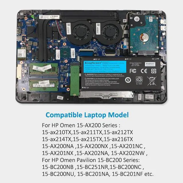 Compatible Laptop ModelsHP Omen 15-AX200 Series : 15-ax210TX,15-ax211TX,15-ax212TX,15-ax214TX,15-ax215TX,15-ax216TXHP Omen 15-AX200 Series : 15-AX219NF,15-AX205NA,15-AX205NW,15-AX206NA,15-AX206NSHP Omen Pavilion 15-BC200 Series: 15-BC200NB ,15-BC251NR,15-BC200NC ,15-BC200NU, 15-BC201NA.etc