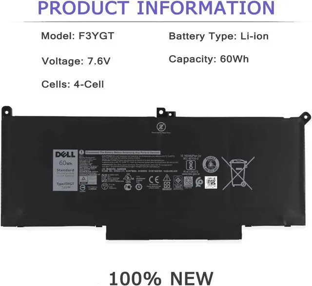 [ Battery Information ] - Model: F3YGT, Battery Type: Li-ion Polymer, Voltage: 7.6V, Capacity: 60Wh/7500mAh, Cell: 4 cells.
