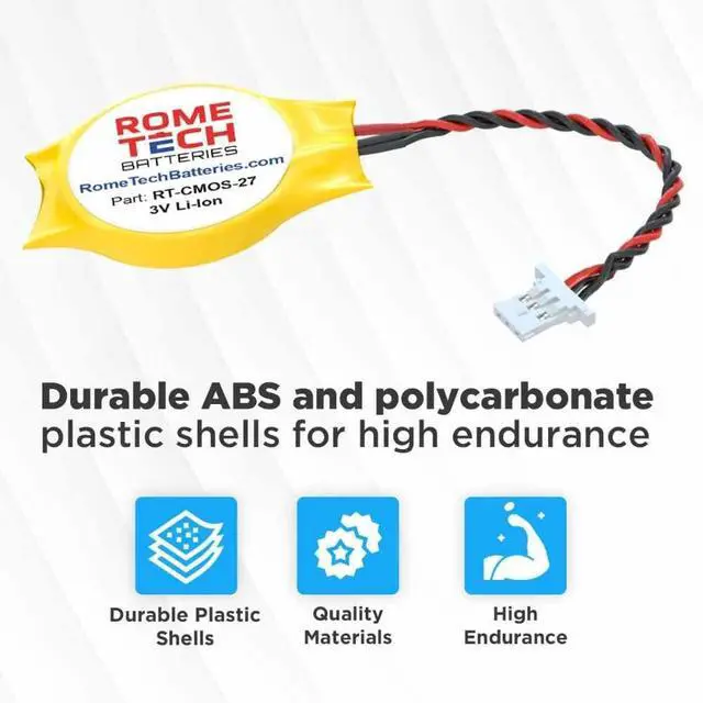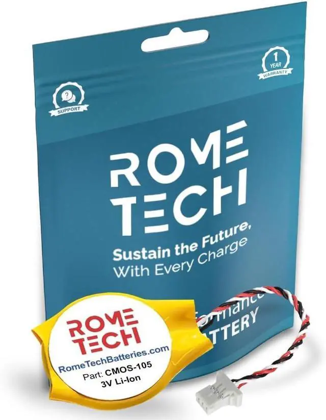 BEST SOLUTION FOR YOUR DEVICE: Rome Tech BIOS CMOS RTC replacement battery designed for reliable performance and high durability, it is guaranteed to maintain 80% of its rated capacity for 12 months from the date of installation. Rome Tech batteries are compatible only with the original equipment COMPATIBLE MODELS: Latitude E4200 E4300 Studio 14 14z 1440 1440-PP40L ROME TECH CMOS BATTERY MAIN ADVANTAGES: Improved battery discharge characteristics Resistance welded gold plated contacts for maximum performance; High quality graded and sorted A' Grade cells; Made of durable ABS and polycarbonate plastic shells for high endurance; Batteries passed essential testing program that includes thermal cycling, oscillation, overcharge test simulation and external short circuit. Click Add to Cart now and replace your old broken battery with branded new Rome Tech OEM BIOS CMOS battery!