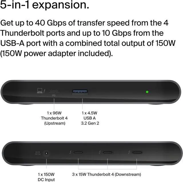 5-IN-1 EXPANSION: This multifunctional Belkin hub accounts for various connection needs, built for fast & convenient connectivity with 5 ports, including 3x downstream and 1x upstream Thunderbolt 4 USB-C ports, plus 1x USB-A port with 96W power delivery.