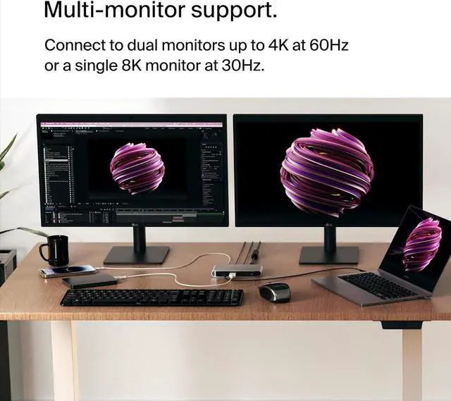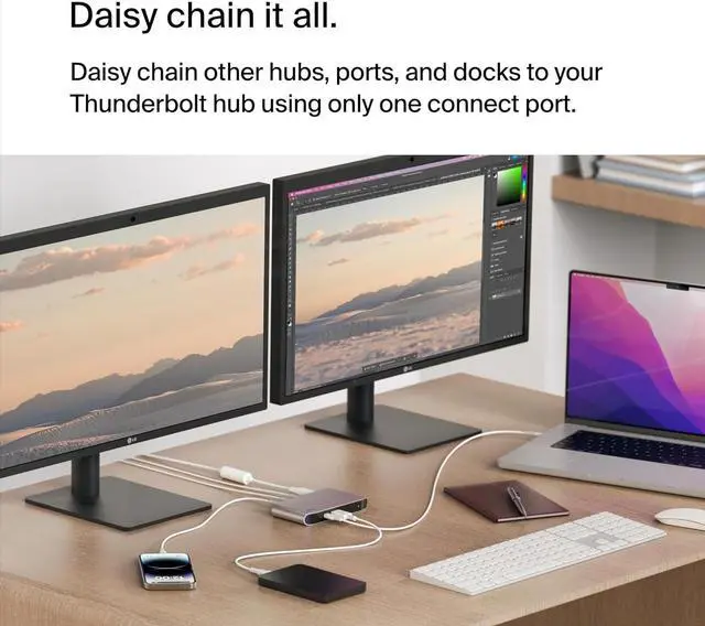 BROAD COMPATIBILITY W/ OVERCURRENT PROTECTION: Connect to USB-C devices such as iPad, MacBook, Chromebook, and PC laptop. Plus, this Thunderbolt 4 certified and USB4 compliant hub keeps all your devices safe with overcurrent protection.