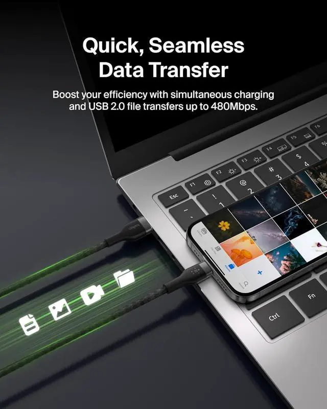 BROAD COMPATIBILITY: Get universal compatibility with this Belkin BoostCharge cable, designed to seamlessly connect with a wide range of devices such as Apple iPhone 16 Series, Samsung Galaxy S24 & S23, Google Pixel 9, and other USB-C compatible devices.