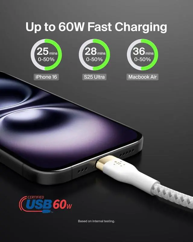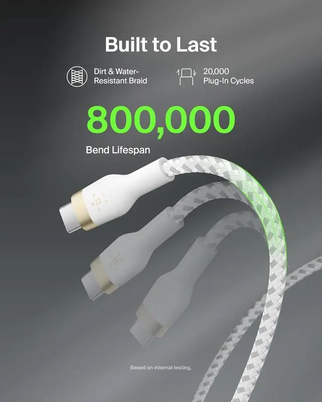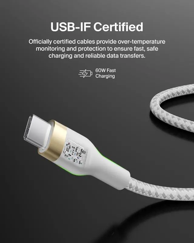 SUPERIOR DURABILITY: This 60W braided USB-C to USB-C cable has been rigorously tested to survive over 30,000+ bends, durably made with ultra-flexible silicone technology to ensure a USB-C charger cable thats up to 30x more durable than ordinary cables.*