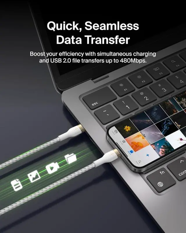 BROAD COMPATIBILITY: Get universal compatibility with this Belkin BoostCharge cable, designed to seamlessly connect with a wide range of devices such as Apple iPhone 16 Series, Samsung Galaxy S24 & S23, Google Pixel 9, and other USB-C compatible devices.