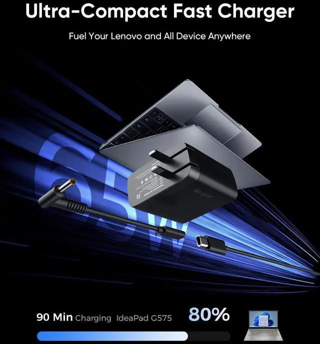 Rapid Recharge Performance: Maximize your time. Engineered to charge devices at high speedfor example, this Lenovo charger for laptop can bring an IdeaPad G575 up to 80% in just about 90 minutes.