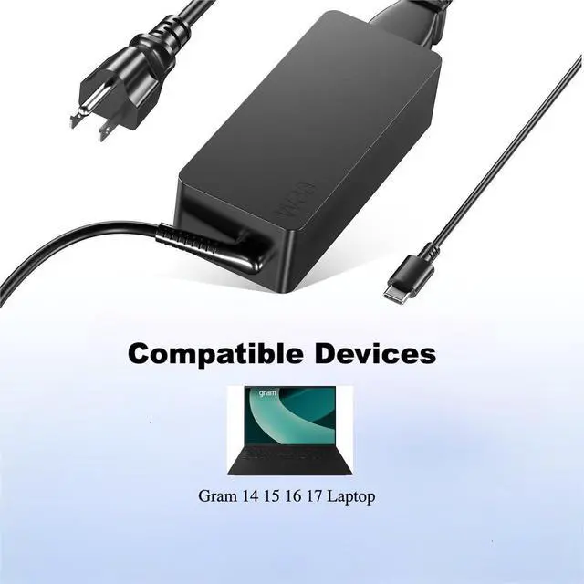 The Dongerdi 65W USB-C Laptop Charger delivers 20V 3.25A output for fast and stable charging of Gram laptops. Designed for broad compatibility, it works with Gram 14, 15, 16, and 17 series laptops. Supporting a universal 100240V input (5060Hz), it is ideal for home, office, and international travel. Built-in safeguards protect against overcurrent, overvoltage, and short circuits. The total 10-foot cable length (6-foot charger cord plus 4-foot power cord) offers flexibility for convenient charging, while the compact, lightweight design ensures easy portability.