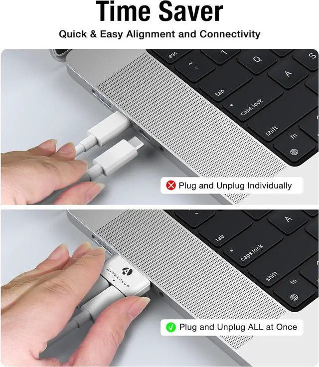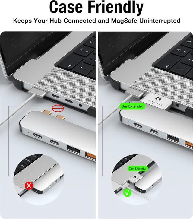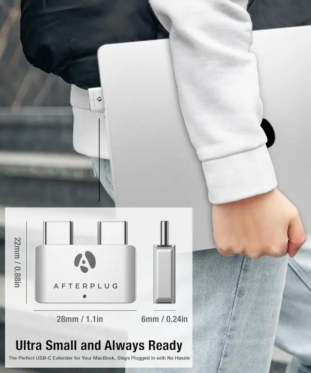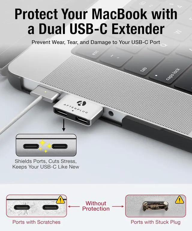 Upgrade your MacBook connectivity without sacrificing protection. The Afterplug Dual USBC Extender for MacBook with Case is designed to let you keep your hard-shell case on while effortlessly connecting multiple peripherals. This sleek, compact adapter acts as a pass-through for your MacBooks built-in USBC ports, ensuring you maintain the native performance of your devicewhether its for data transfer, video output, or charging. Engineered specifically for MacBook Pro (2016 and up) and MacBook Air (2018 and up), this extender allows you to easily plug in two devices at once, streamlining your workflow whether youre at the office or on the go. Its robust aluminum construction not only provides a secure connection but also serves as a durable buffer, protecting your USBC ports from daily wear and tear to extend their lifespan. Experience the perfect balance of convenience and reliability with the Afterplug Dual USBC Extenderwhere case-friendly design meets uncompromised performance for your MacBook.