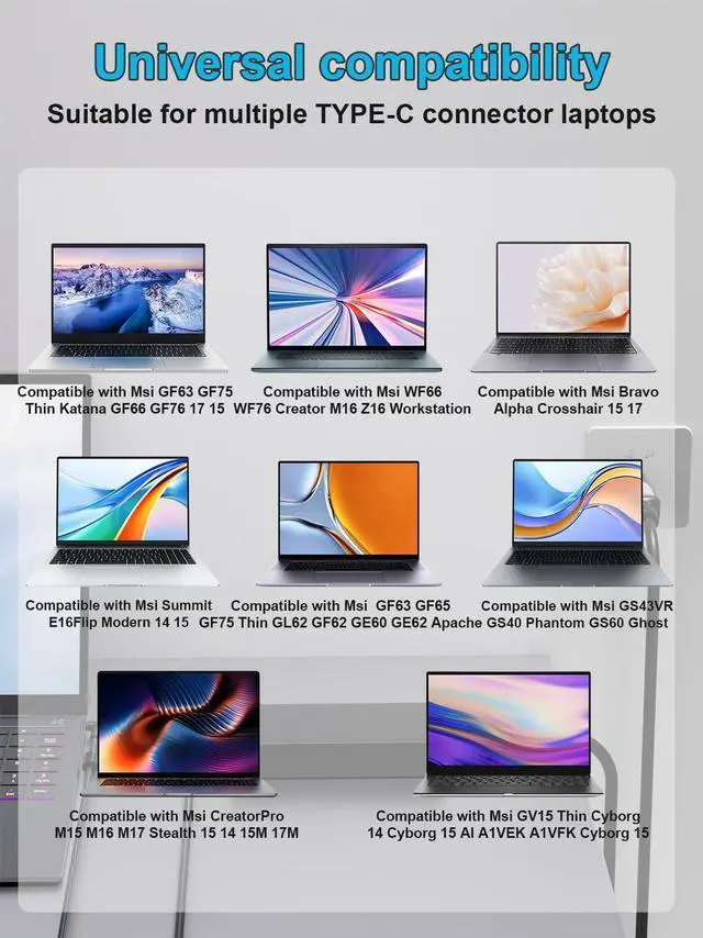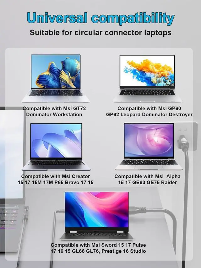 Compatible with MSI 120W 150W 180W 4.5mm*3.0mm Laptop Charger Power Supply Adapter Cord Cable
