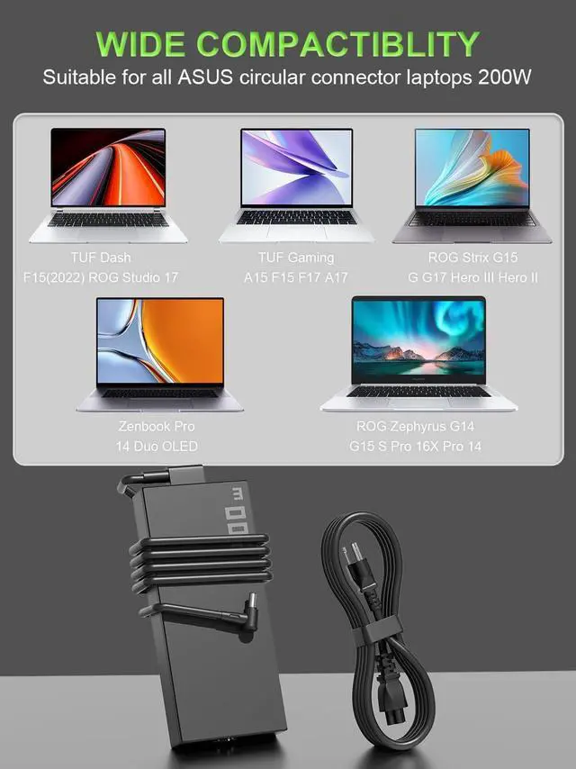 Compatible with ASUS ROG Zephyrus G15 (2022) GA503 GA503RM GA503R GA503QM GA503QR GA503QS Zenbook Pro 16X OLED (UX7602) UX7602VI UX7602ZM Zenbook Pro 14 OLED (UX6404) UX6404VV UX6404VI ROG Zephyrus G15 GA503QE GA503QC ROG Zephyrus G14 AW SE GA401QEC-K2064T ROG Zephyrus G14 GA401 GA401QC GA401QE GA401QM GA401QH GA401IHR GA401IH GA401II GA401IU GA401IV GA401IVC ROG Zephyrus G15 GA502 GA502IU GA502IV GA502DU ROG Zephyrus S GX531GM Zenbook Pro 14 Duo OLED (UX8402) UX8402VU UX8402VV UX8402ZA UX8402ZE ADP-200JB D Laptop Computer Replacement Power Supply Adapter Cord Cable Charger