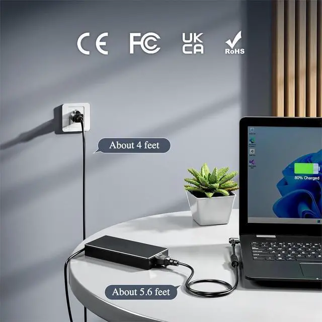 This 120W laptop charger is engineered for fast, stable, and efficient charging of high-performance gaming laptops. With universal voltage support (100240V, 5060Hz), it's ideal for both home and international use. The total 10-foot reachcomprised of a 6-foot charger and a 4-foot power cordoffers flexible charging in any environment. Its slim, lightweight design makes it perfect for travel, while built-in safety protections guard against over-current, over-temperature, over-voltage, and short circuit. Compatible Models: Thin 15 B12U, B13V; Thin A15 B7UC; Thin GF63 12UC, 12UCX, 12VF, 12VE; Cyborg 14 A13V, A13U; Cyborg 15 A13VE, A13VF, A12VE, A12VF; Cyborg 15 AI A1VFK, A1VEK; GF63 Thin 11UC, 10UC; Creator M14 A13VE, A13VF. This charger is a reliable and portable power solution for gamers, creators, and professionals on the go.