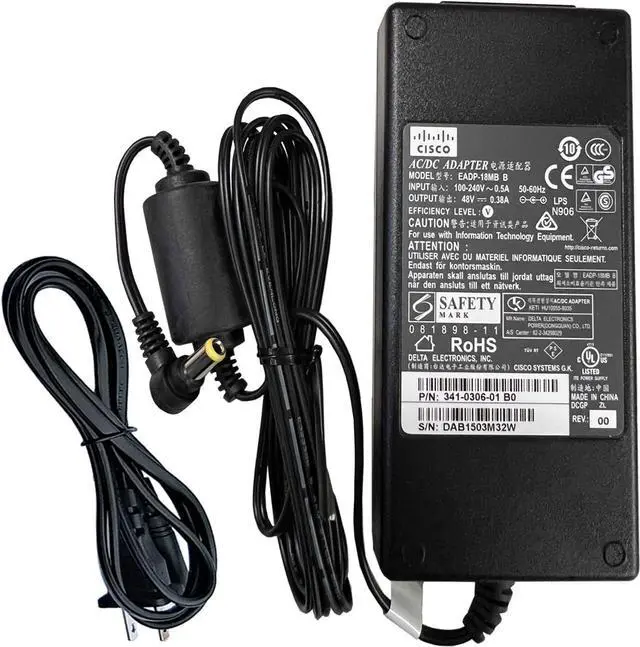 Original OEM UL Genuine Parts 48V AC / DC Adapter Compatible with Cisco Aironet 1700 2700 3700 3700i AIR-CAP3702I-A-K9 AIR-CAP3702I-B-K9 AIR-CAP3702I-R-K9 AIR-CAP3702I-E-K9 AIR-LAP1142N-A-K9 AIR-LAP1142N-N_K9 AIR-LAP1242AG-A-K9 LAP1142 AIR-CAP1702I-A-K9 B-K9 AIR-CAP2702I-A-K9 Z-K9 AIR-CAP2702E-B-K9 AIR-CAP3602E-A-K9 C-K9 E-K9 AIR-AP1120B-A-K9 AIR-AP1121G-A-K9 AIR-CAP3602I-A-K9 E-K9 T-K9 K-K9 N-K9 AIR-PWRINJ3 Power Over Ethernet PoE Injector 47-15936-03 Access Point AP 48VDC DC48V 48.0V 48 V 48.0 VDC Switching Power Supply Cord Cable PS Battery Charger Mains PSU CECCCROHS 100-240