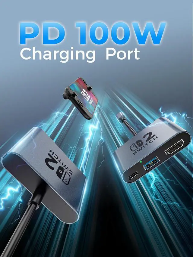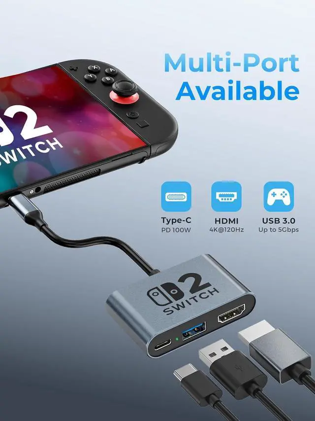 4K@120Hz HDMI OutputThe Switch 2 TV dock supports 4K@120Hz and 1080P (1920x1080) display output, delivering exceptionally crisp visuals on your screen. Experience stunning 4K Ultra HD graphics with smooth 120Hz playback,This setup elevates the gaming experience for all enthusiasts.Perfect replacement for official switch 2 dock