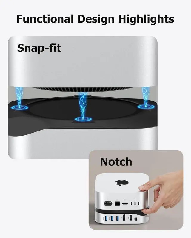 [Tool-Free Magnetic SSD Enclosure] The BAOZEE Mac Mini Dock is designed with a magnetic bottom cover for quick, screw-less SSD installation. Includes a thermal pad for efficient heat dissipation, keeping your drive cool and stable during heavy workloads.