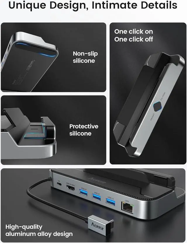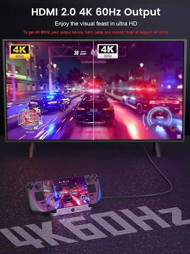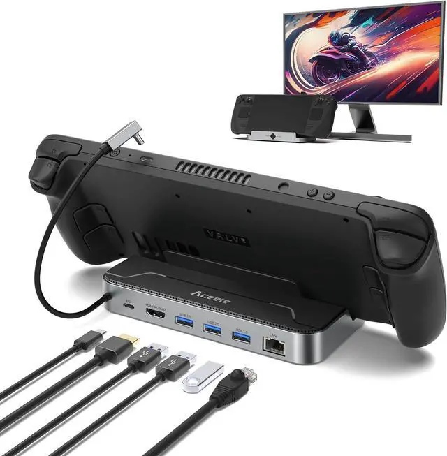 Strong CompatibilityThe designed for Steam deck, and also compatible with other devices built-in USB C port, such as ROG Ally, Legion GoSwitch,laptop,iPad,Android,phones,etc.Steam deck docking station redefines your Steam Deck gaming experience, allows you to project games to a larger display when you are tired of using thumbsticks or trackpads. Note: Not compatible with AYA NEO console.