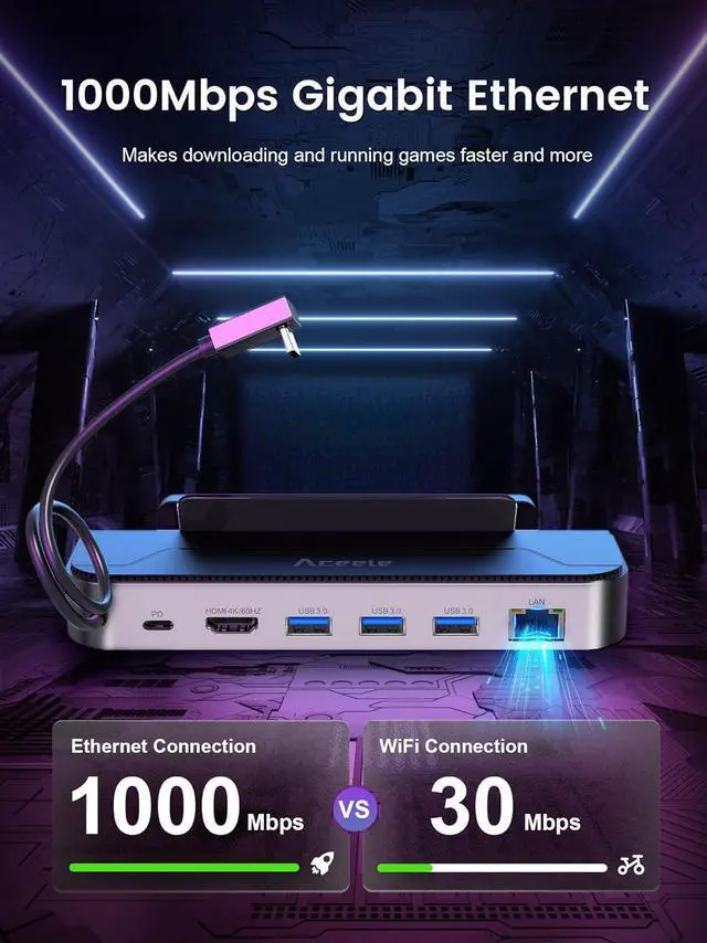 Transfer Files in Seconds3 USB 3.0 ports for steam deck allows you to attach more peripherals, such as keyboard, mouse, usb driver, usb hard disks, etc. USB-A 3.0 ports are up to 5Gbps transfer speed, allows you to transfer files in seconds.