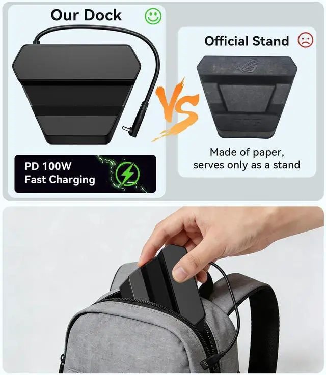 Compatibility: The SiWiQU dock only works with ROG Xbox Ally X / ROG Xbox Ally. The ROG Xbox Ally docking station is not work with ROG Ally / ROG Ally X. (NOTE: only docking station included, no cable or charger. Please use official ROG original power adapter.)