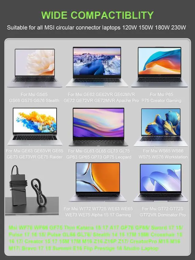 Compatible with GE63 GE63VR GE65 GE73 GE73VR GE75 Raider/ GL63 GL65 GL73 GL75 GP63 GP65 GP73 GP75 Leopard/ GE62 GE62VR GE62MVR GE72 GE72VR GE72MVR Apache Pro/ GT72 GT72S GT72VR Dominator Pro/ WT72 WT72S WE63 WE65 WE73 WE75 Alpha 15 17, WF76 WF66 GF75 Thin Katana 15 17 A17 GF76 GF66/ Sword 17 15/ Pulse 17 16 15/ Pulse GL66 GL76/ Stealth 14 15 17M 15M/ Crosshair 15 16 17/ Creator 15 17 15M 17M M16 Z16 Z16P Z17/ CreatorPro M15 M16 M17/ Bravo 17 15 Summit E16 Flip Prestige 16 Studio Laptop