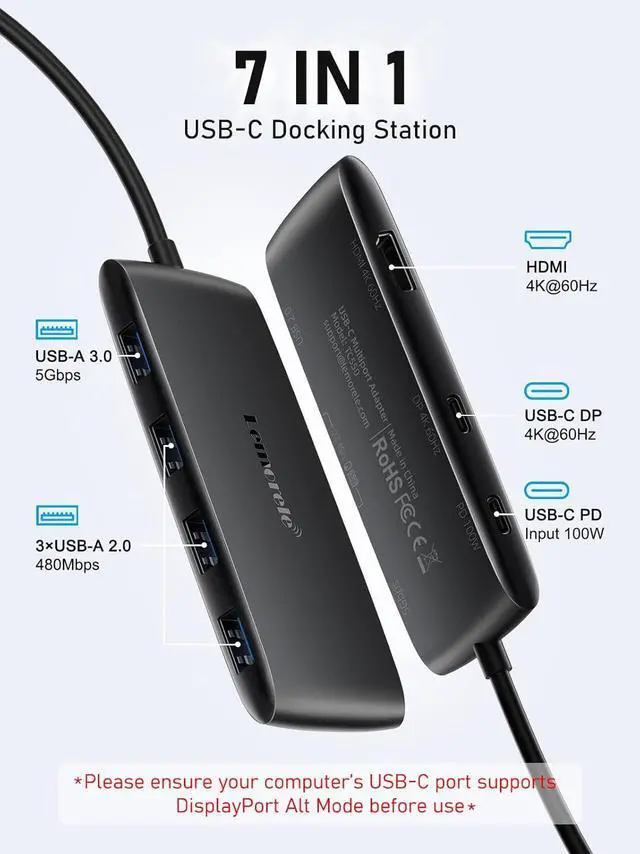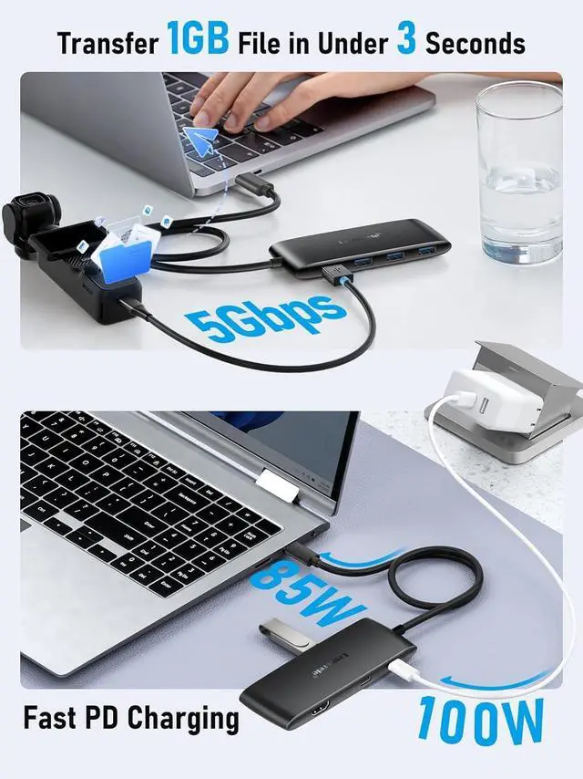 Powerful PD Charging (100W): Supports up to 100W of Power Delivery (PD) charging output, providing fast and stable charging for your laptop, tablet, and other devices, ensuring efficient work. (Note: Please ensure that your laptop's USB C port supports power delivery protocol.)