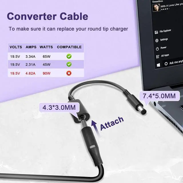 PACKAGE1* AC Adapter, 1* Power Cord, 1* 4.5mm x 3.0mm to 7.4mm x 5.0mm Converter Cable, 1* User Manual. We have always been committed to providing products of superior quality at unbeatable prices, and believe that our products will bring you a pleasant experience.