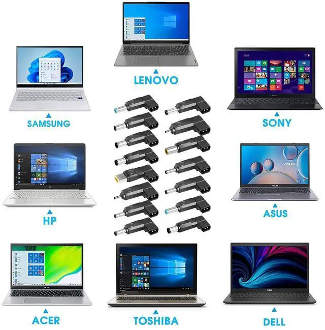 Laptop DC Power Adapter Kit USB C PD Charger Cable compatible with HP, Dell, Lenovo, Ideapad, Thinkpad, Acer, Samsung, Asus, Toshiba, Sony, IBM, VIZIO, LG, MSI, BenQ, Fujitsu, Compaq and more computers that fit these tips.