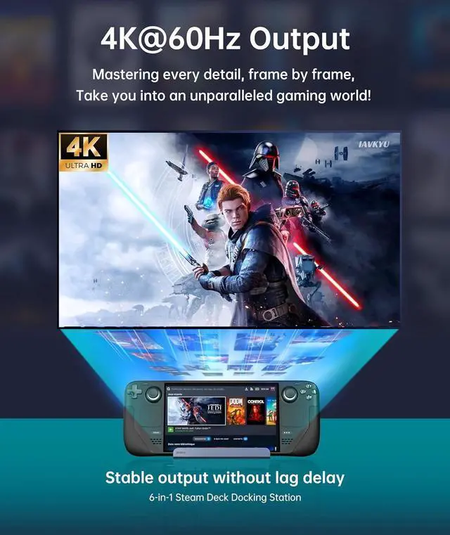 6-in-1 Docking StationThis Steam Deck OLED Dock, featuring a 4K@60Hz HDMI output and a Gigabit Ethernet input, is designed to enhance your gaming experience with devices like the Valve Steam Deck, ROG Ally, and Legion Go. It also boasts three USB-A 3.0 ports and a USB-C charging port for added convenience. Please note that this Stream Deck Dock is not suitable for protective cases equipped with kickstands such as the ROG Ally case; it's crucial to ensure your case thickness remains under 2mm.