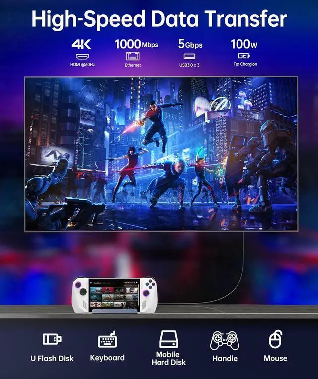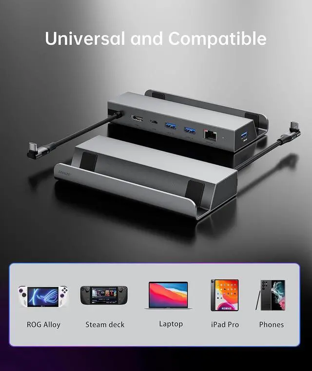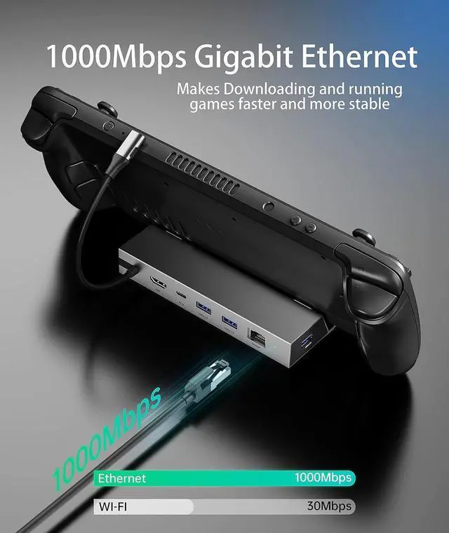 Stable Network & Fast DataThe ASUS ROG alloy accessories complement the Valve Steam Deck OLED, lenovo legion go dock, enhancing its capabilities. This docking station for Steam Deck, asus rog alloy, lenovo legion go provides not only a high-speed gigabit Ethernet connection for top-tier gaming with minimal latency but also three USB 3.0 ports for rapid 5Gbps data transfer and seamless accessory integrationperfect for gamers demanding peak performance.