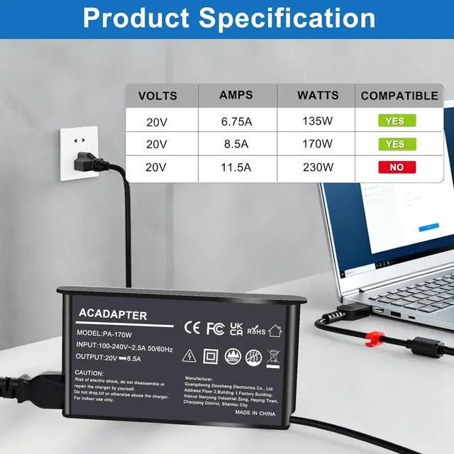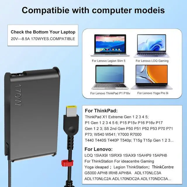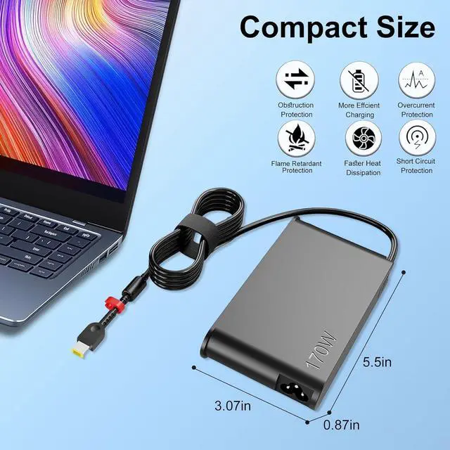 POWER OUTPUT: 170W power delivery ensures optimal charging performance for your Lenovo laptop