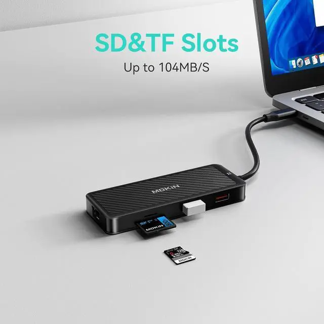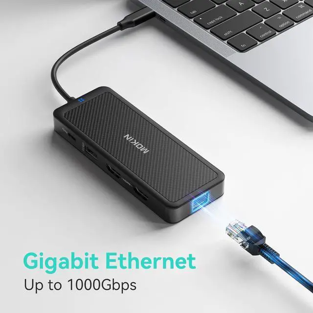 9 IN 1 Laptop Docking StationMOKiN USB C HDMI multiport adapter equips with 2 4K capable HDMI ports, Gigabit RJ45 port, USB C PD port (only charging), SD/TF card slot, 2x USB 3.1 Ports and 1x USB 2.0 Ports. With a simple plug and play connectivity, This USB C hub turns any MacBook or USB C capable PC laptop into a mobile workstation!