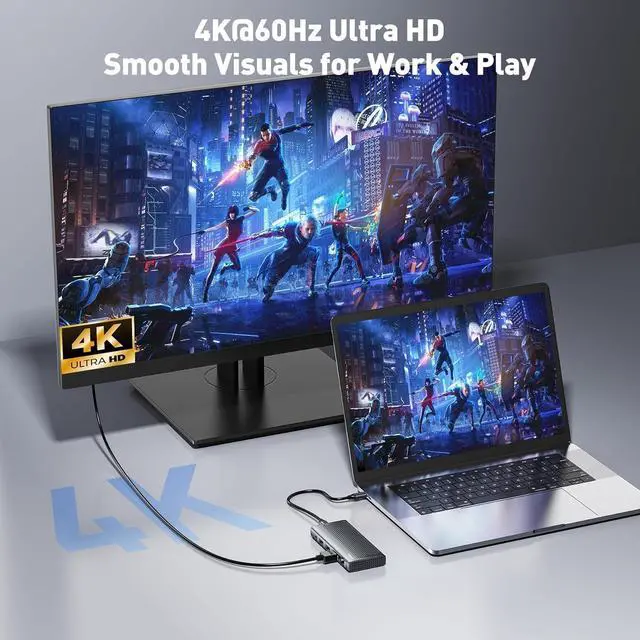 4K@60Hz HDMI Output for Ultra HD DisplayEquipped with an HDMI port that supports 4K resolution at a smooth 60Hz refresh rate, this dock delivers detailed and fluid video for movies, games, and video conferences. Ideal for both professional presentations and home entertainment, it ensures a stable and high-quality visual experience.