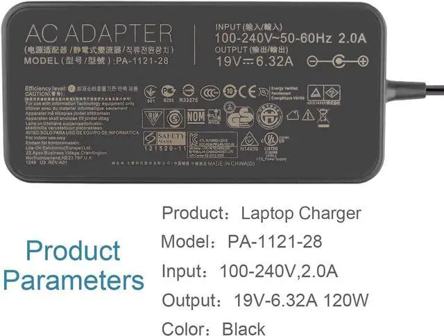 Input: AC 100-240v, 50-60Hz, Output: 19V 6.32A 120W, NOT replace 180W charger ! Connector Size : 6.0*3.7mm ( not 4.5*3.0mm or 5.5*2.5mm , Please confirm before you buy