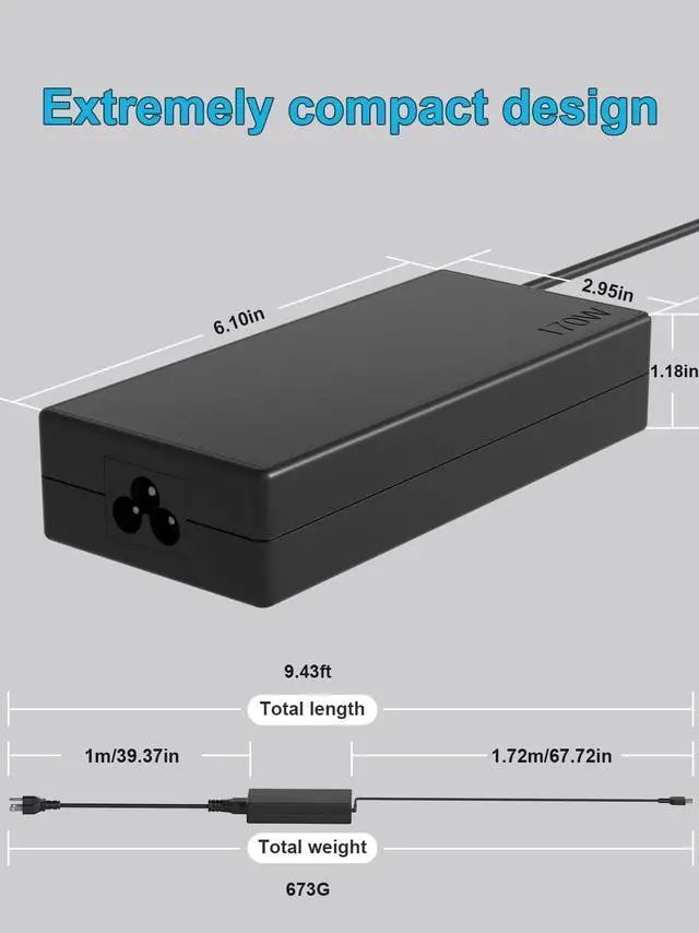 Output Max: 20V 8.5A 170W (135W also compatible) Connector size; Square Yellow Tip / Input Volt Range: 110-240V / Replacement Laptop Computer Charger AC Power Adapter Supply Cord Cable by HSXIRQA