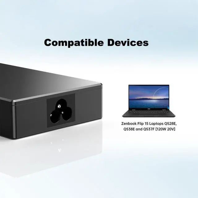 Fast Power Output: Delivers up to 120W (20V 6A) for fast, stable charging of Zenbook Flip 15 laptops